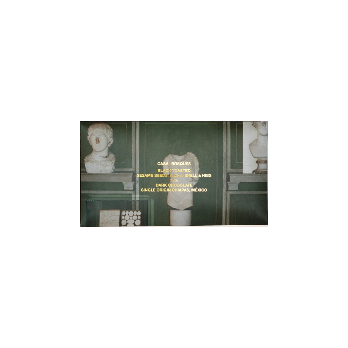 Ingredients: Organic cacao bean, Black toasted sesame seeds, cacao shells, cacao nibs, organic cane sugar.
