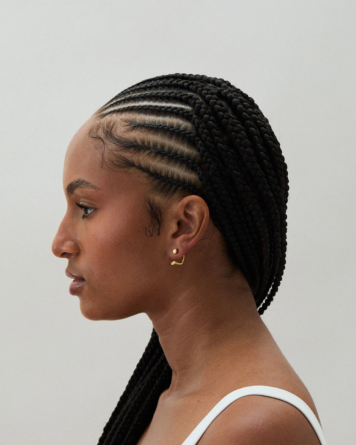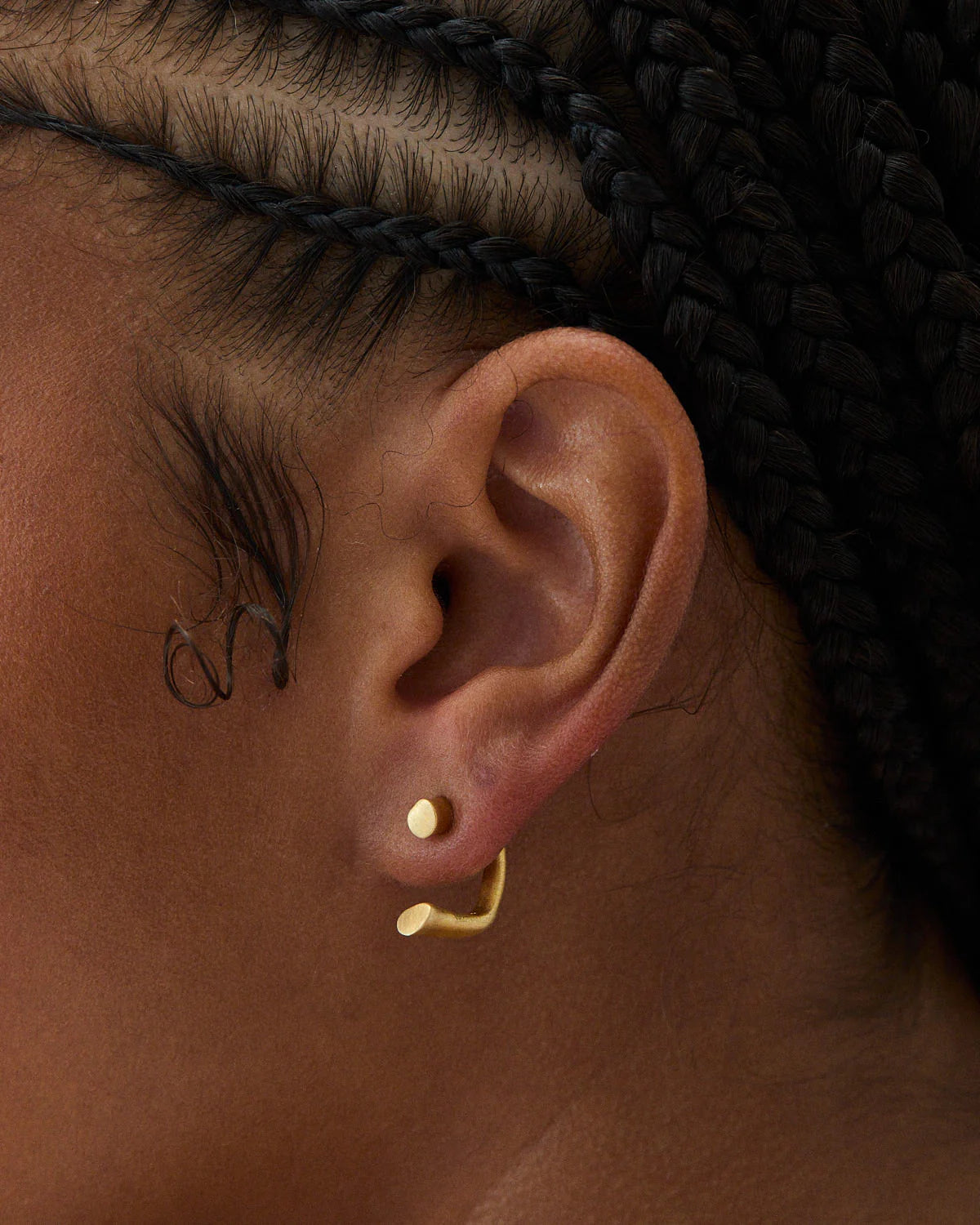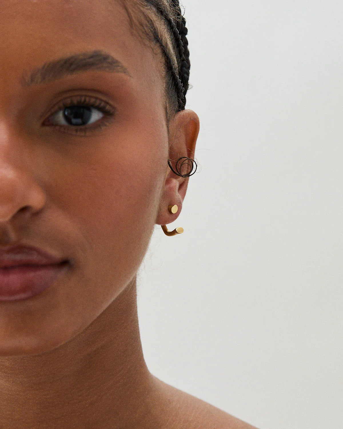 An irregular hoop passing through the ear and cut in the middle. Gives the illusion of an expanded perforation. Satin finish.