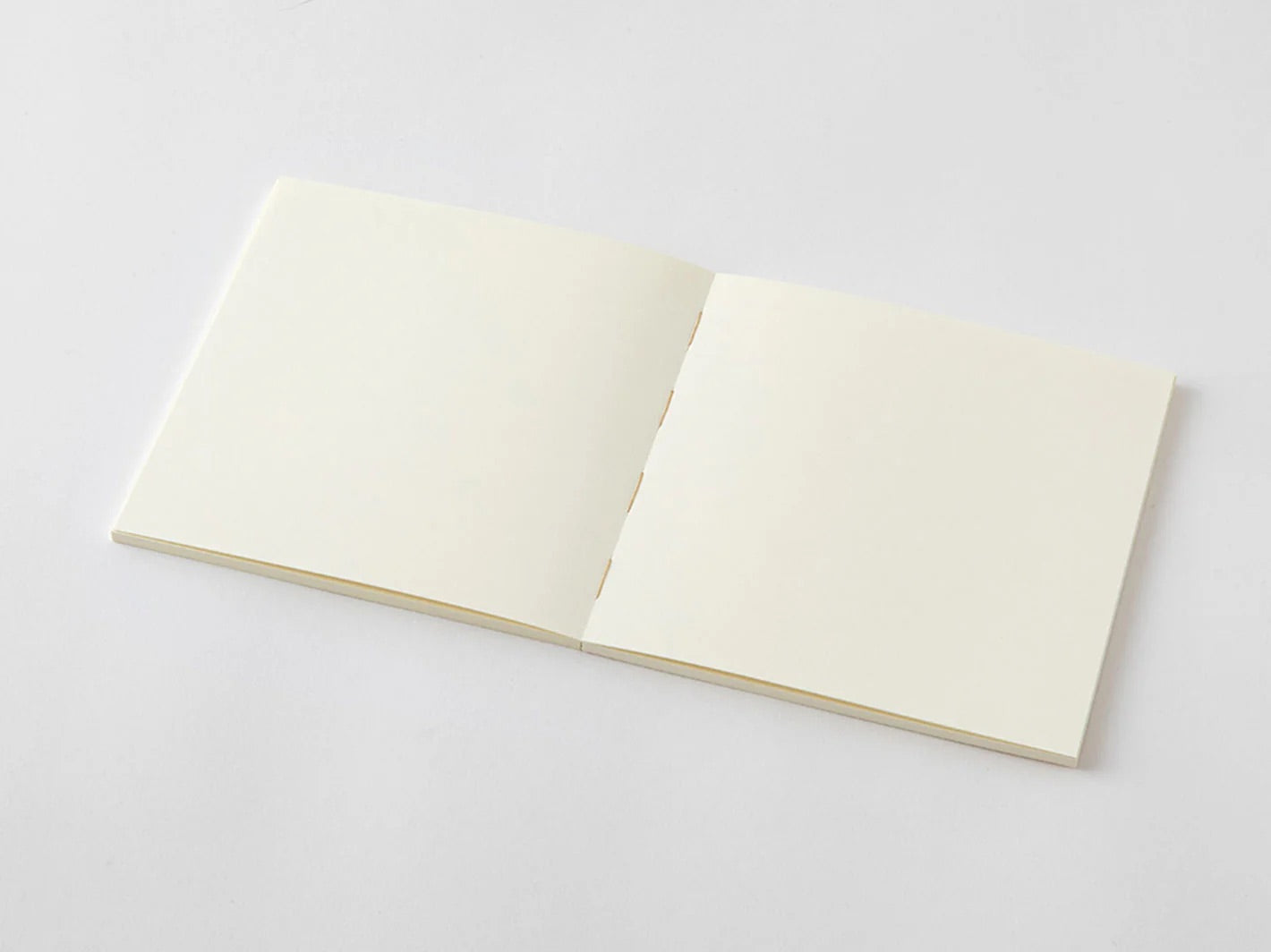 The Notebook Thick takes the high-quality pages that MD is known for and increases the thickness of each sheet, offering a perfect place to enjoy dark colours, heavy lines and more without the risk of ink showing through on the other side.Designed deliberately with no cover but instead with a cheesecloth mesh tape appended to the spine in plain sight, a coloured bookmark and index label sticker, this notebook features a minimalist approach to focus on the joy of writing. This MD notebook is created using traditional thread-stitched book-binding methods, with pages of paper folded into a bundle and stitched down the spine for durability and a perfect lay-flat design opening to 180 degrees.