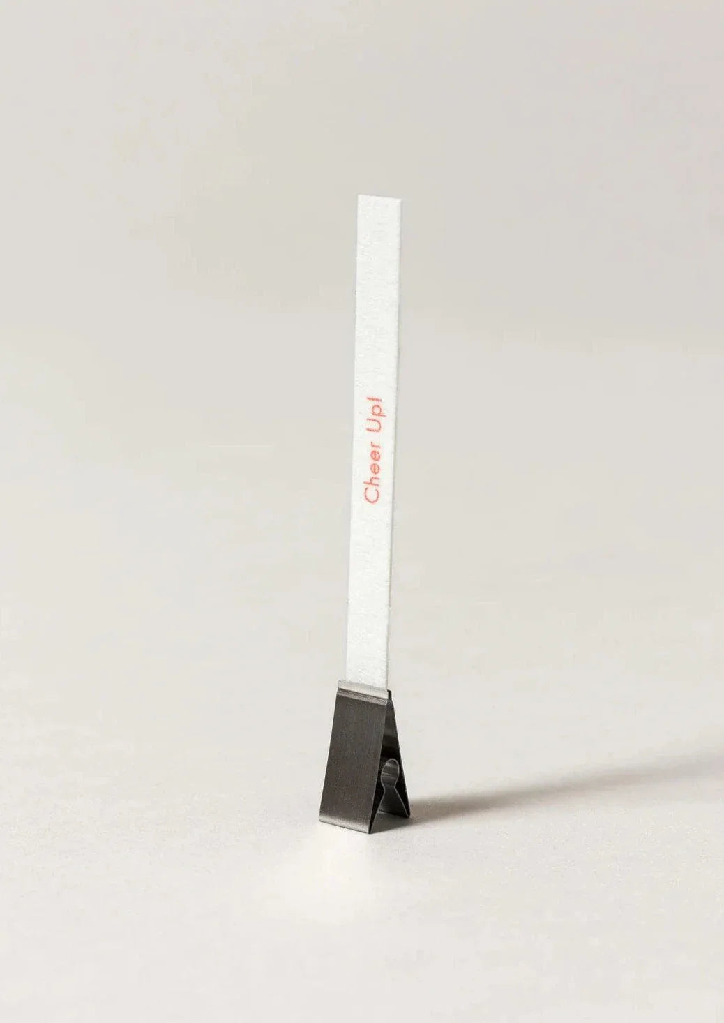 On each individual strip is printed words of encouragement, with notes such as "Cheer Up!" or "Take a Break" providing messages of warmth and solidarity as they fill a space with fragrance. Slip one into a gift or card as an aromatic affirmation, or enjoy this incense at home as a way to brighten your day.